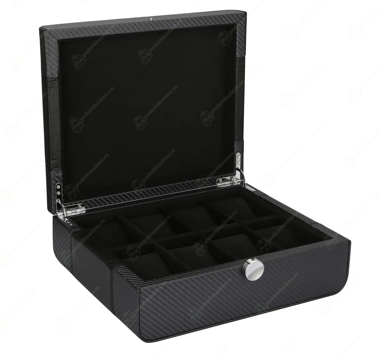 Шкатулка для хранения 8 наручных часов, деревянный корпус отделан карбоном и перфорированной кожей