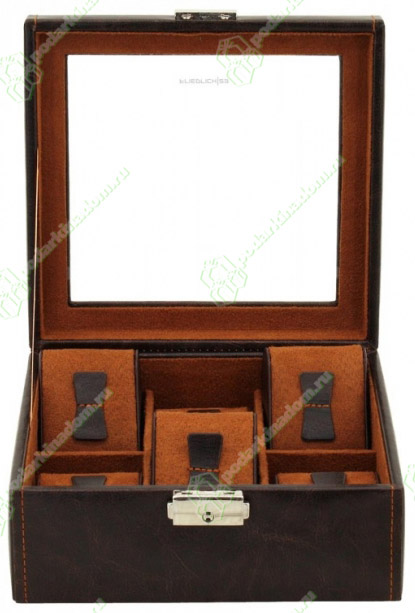 Шкатулка для хранения 6 часов.С внешней отделкой из экокожи и оранжево-коричневым велюром внутри.