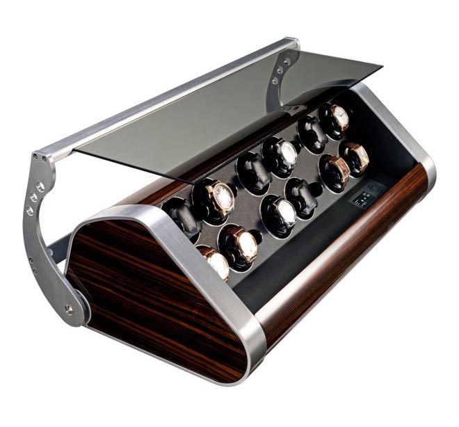 Шкатулка для двенадцати часов с автоподзаводом. Бесшумная работа, надежные держатели, имеется три режима вращения, режим быстрого завода, таймер, спящий режим, новейшая система освещения и др..