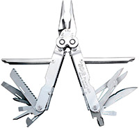 Среди основных функциональных элементов: подпружиненный ножи с прямым и серрейторным клинком, пассатижи, напильник, пила, линейка, открывалка, консервный нож, шило, держатель для бит и несколько отвёрток.