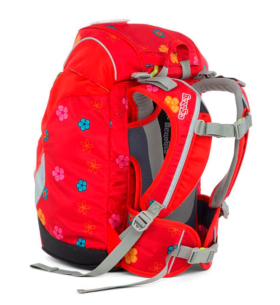 Задняя часть рюкзака оснащена жесткой алюминиевой рамкой, четко повторяющей контуры позвоночника ребенка, и воздухопроницаемой мягкой прокладкой на спинке рюкзака;