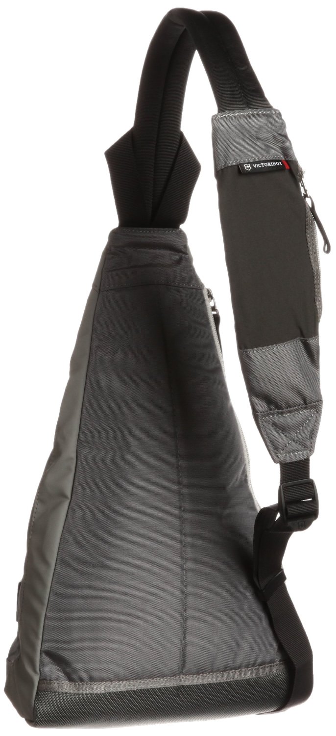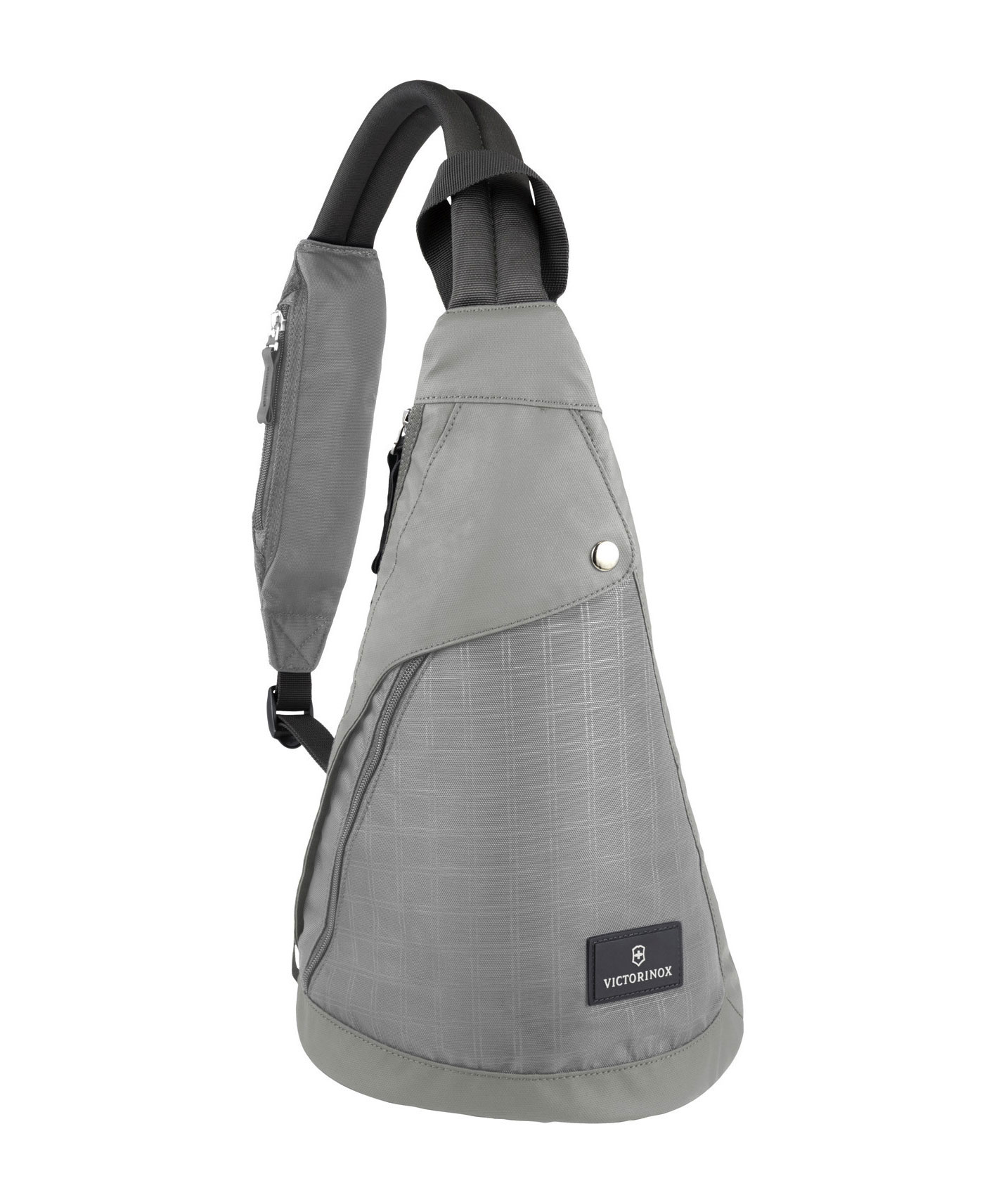 Рюкзак с одним плечевым ремнем выполнен из прочного нейлона серого цвета