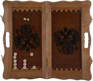 Нарды из массива дерева со вставкой из кожи, тиснение "Тайпан".