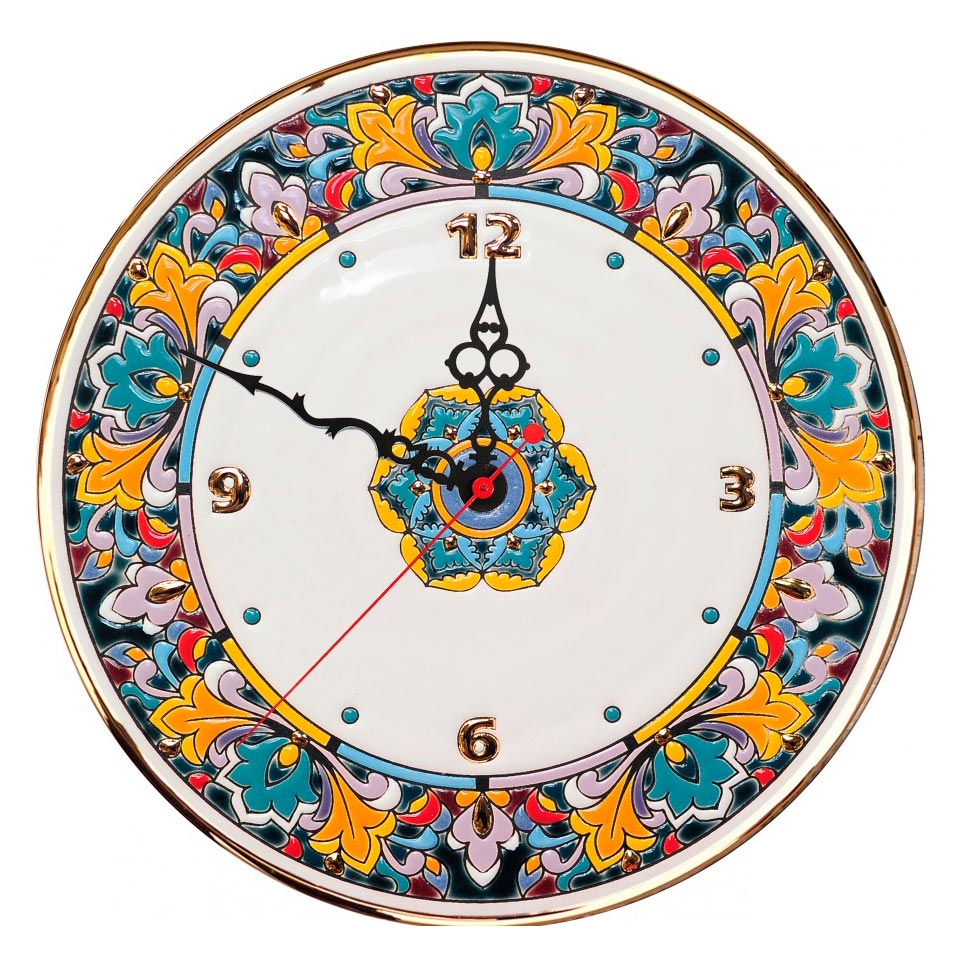 Круглые настенные часы ручной работы из керамики, отделка: позолота 24К, авторская роспись.
