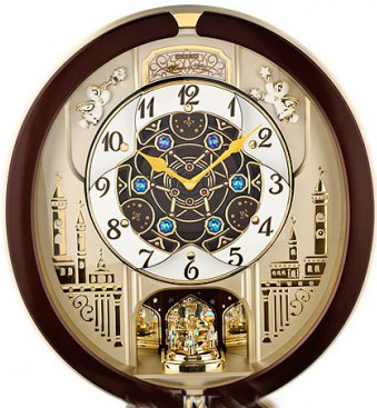 Кварцевые настенные часы с вращающимся маятником, корпус сделан из пластика, размер 44.3 x 40.5 x 9.7 см , 18 мелодий, мелодия каждый час, датчик освещенности, контроль громкости, батарейка: 4 шт. C в комплекте