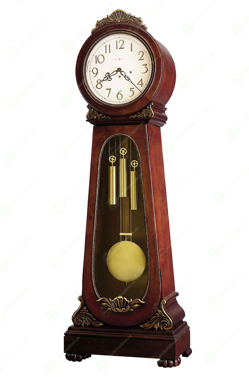 Брашированные гири и маятник. Настраиваемые по высоте опоры под каждым углом, обеспечивают устойчивость на неровных полах. Корпус оснащен встроенной подсветкой (требуется подключение к электросети).