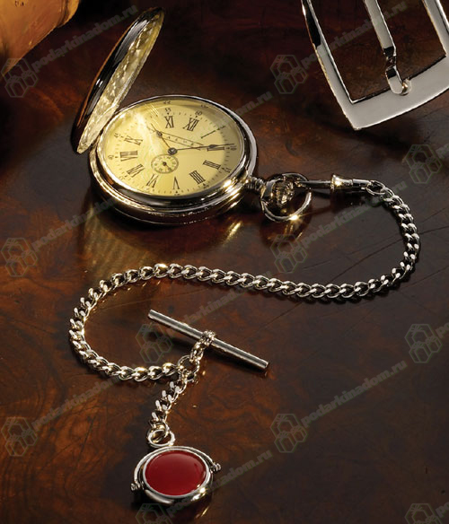 Часы карманные для охотника с цепочкой Albert, сталь, латунь, красный оникс