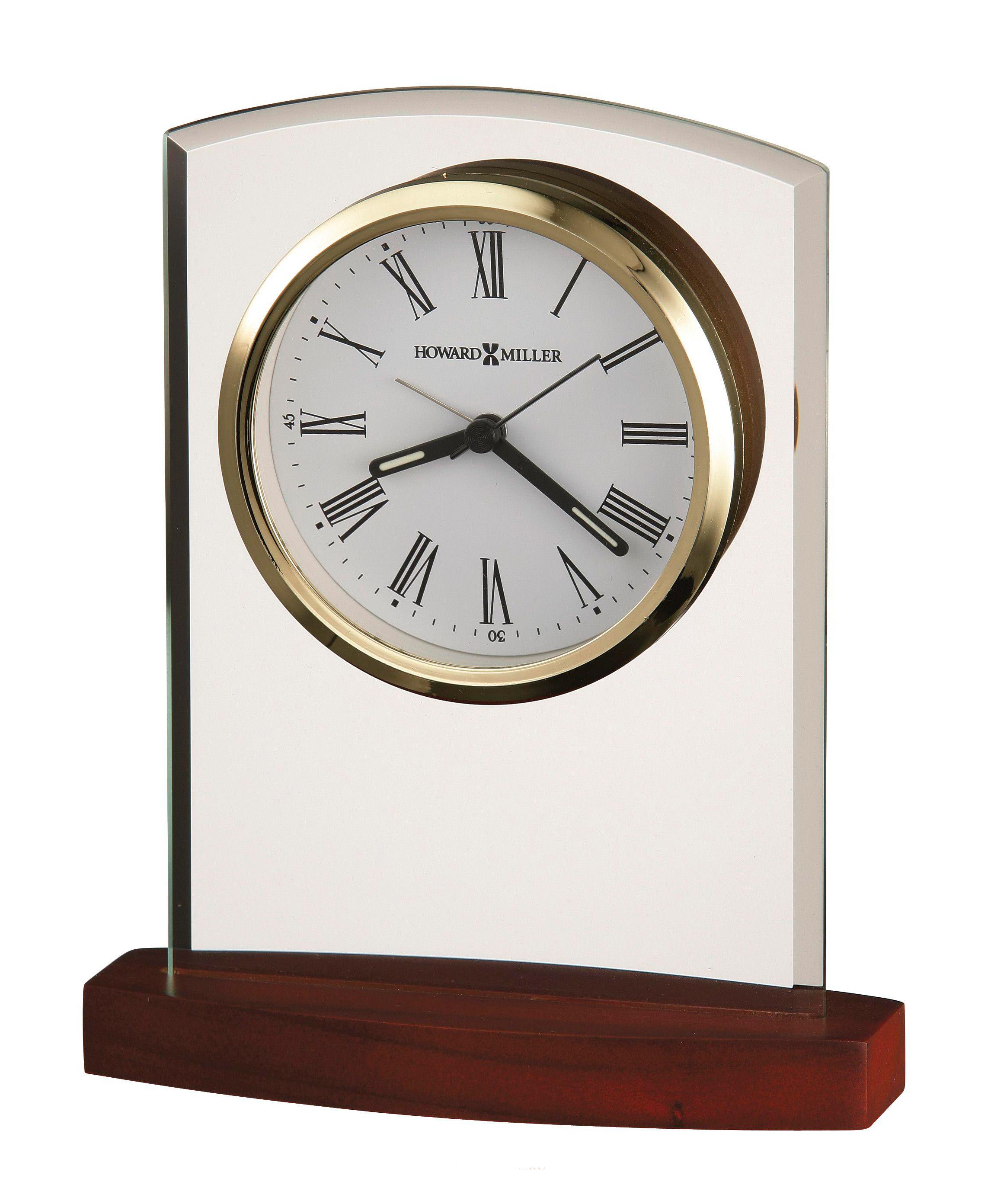 Часы-будильник в виде арки. Циферблат вмонтирован внутрь стеклянного ограненного корпуса. Основание часов из палисандрового дерева матового цвета.