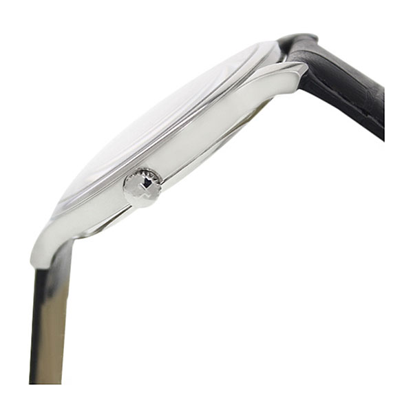 Мужские наручные часы в классическом исполнении с арабскими цифрами на кожаном ремешке.